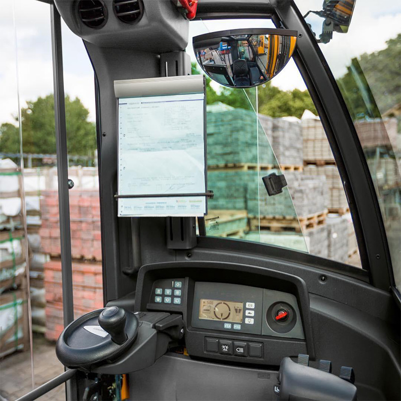سیستم کمکی operation control با توجه به جدول افت ظرفیت دستگاه در ارتفاع های مختلف که توسط کارخانه سازنده اعلام میگردد جهت جلوگیری از آسیب و فشاروارد شده به سیستم هیدرولیک و همچنین جهت جلوگیری از وا ژگونی دستگاه در صورتی که وزن بار پالت بیش از حد مجاز جدول افت ظرفیت استاندارد اعلام شده باشد توسط سنسورهای موجود بر روی دستگاه شروع به دادن سیگنال هشدار کرده که وزن پالت در ارتفاع مورد نظر بیش از حد تعیین شده دستگاه میباشد که این سیستم جهت افزایش ایمنی و جلوگیری از وا ژگونی دستگاه و پیشگیری از اسیب وارد شده به قسمت هیدرولیک دستگاه میباشد. این سیستم به کارخانه ها و صنایعی که در انبارهایشان دارای پالت های متنوعی از لحاظ سایز و اندازه و وزن باشند و ممکن است اپراتور اطلاعات دقیقی از پارامتر های ذکر شده نداشته باشد که با کمک این سیستم مشخص میشود که اپراتور بار مورد نظر را تا چه ارتفاعی میتواند در قفسه مربوطه بارگذاری کند که بیشتر از حد مجاز تعیین شده توسط کارخانه سازنده نباشد.ETV 110/112