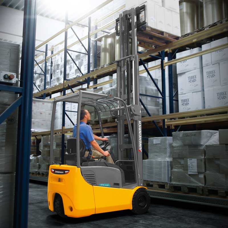 - در این لیفتراک های برقی سه چرخ عرض دستگاه فقط 99 سانتی متر می باشد که دارای ابعاد جمع و جور و فشرده بوده و دارای قدرت مانور بسیار بالا می باشد.