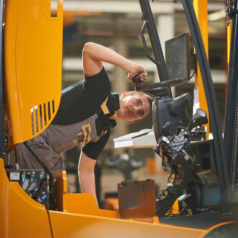 - جمع شدن تمام اعمال هیدرولیکی دستگاه از قبیل ساید شیفت، شیب دکل و بالا و پایین آمدن دکل بر روی یک اهرم (solo pilot) و بسیار ارگونومیک
