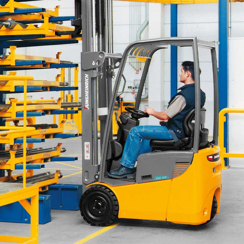 - این سری از لیفتراک های برقی بصورت سه چرخ بوده (چرخ عقب تک می باشد)که موتور حرکتی در قسمت عقب دستگاه می باشد.