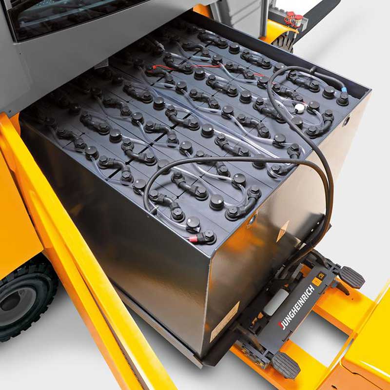 - سیستم تعویض بسیار راحت باطری از پهلو جهت راحتی اپراتور